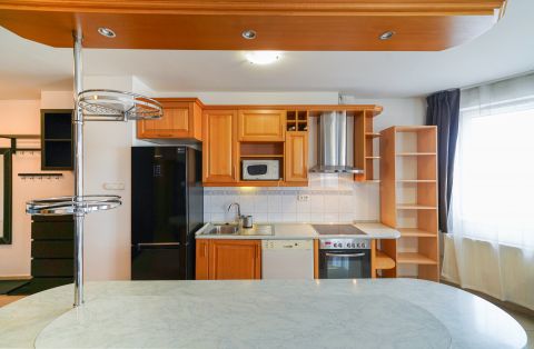 A fürdőszoba modern kialakítása pedig a mindennapi kényelmet szolgálja. A lakás panorámás kilátással rendelkezik, amely a folyóra néz, így minden reggel csodálatos látvány fogadja Önt.
