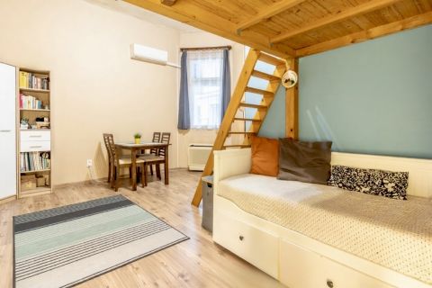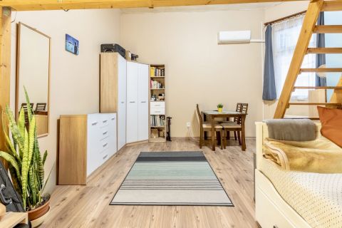 Budapest VIII. kerületében, a Mátyás tér környékén eladó egy 41 m2-es, fekvő galériával rendelkező, jó állapotú, hangulatos, 2 szobás lakás.