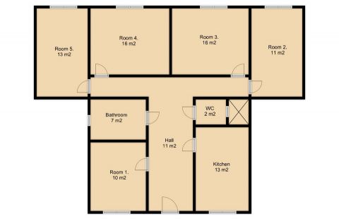 A 99 m² alapterületű 5 szobás lakás praktikusan 5 külön nyíló szobával rendelkezik. Az elrendezés ideális hosszú távú bérbeadásra, munkásszállásnak, diákoknak vagy többfős bérlői struktúrára.