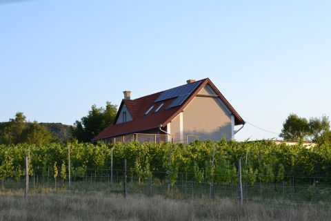 A pince 6 helyiségből áll körülbelül 150 négyzetméter. Az eredeti présház raktárnak használható, illetve itt található a napelem invertere, az 1800-as évek végén, vagy az 1900-as évek elején épített boltíves pincét megőriztük, körbeépítettük, hordóknak és palackoknak is tökéletes, szellőzése is rendben van. Palackos borok tárolására szolgáló helyiség a 2000-as években épült hozzá, majd 2019-ben épült egy 50 négyzetméteres tartálytér, mely összeköttetésben áll a kóstolótérrel-vendégfogadótérrel. A tartálytér 5,5KW-os, a kóstoló 3,5KW-os hűtő-fűtő klímával temperálható. Ehhez tartozik még egy tároló helyiség. Külső szigetelés itt 10cm XPS. A pince saját emésztőtartállyal rendelkezik. A ház porotherm téglából épült, a tetőtér beépített, mely nyílt cellás befújt szigetelést kapott. Homlokzat északi oldalán 15cm, a többi oldalon kitettségnek megfelelő vastagságú szigetelés található. A tetősík ablakok Velux márkájúak, külső hővédővel, belső árnyékolóval ellátottak. A tető héjazata creaton balance kerámia cserép. A tetőtéri ablakokból pazar kilátás nyílik a Tapolcai-medencére, Csobáncra és Hegyesdre.