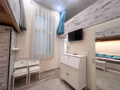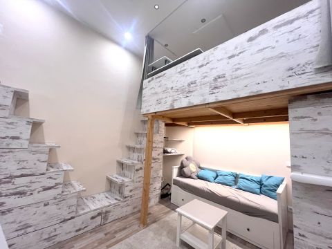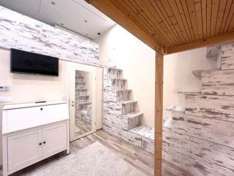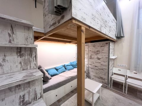 egy nettó 23 m²-es, bruttó 38 m²-ként élt, duplagalériás kis lakás, ami pont annyira praktikus, mint amennyire édes.