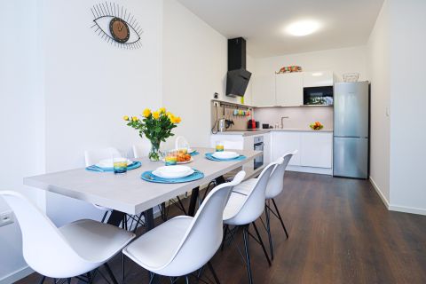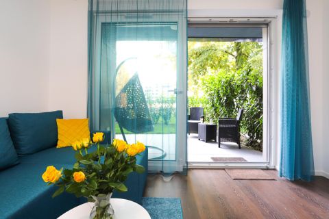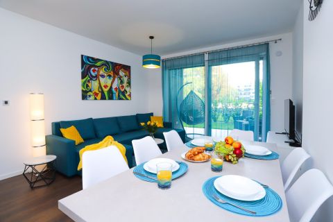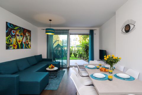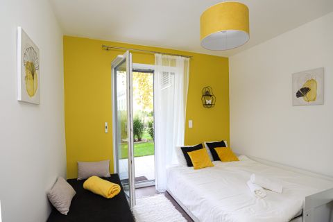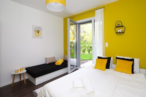 A lakás praktikus és élhető elrendezéssel rendelkezik: tágas, világos nappali + 2 külön nyíló hálószoba, 2 fürdőszoba, amely maximális kényelmet biztosít családok és vendégek számára egyaránt. A nappaliból közvetlen kijárat nyílik az erkélyre és a saját kertkapcsolatra, ahol a reggeli kávé vagy egy esti borozás valódi balatoni életérzéssé válik. A saját kertkapcsolat 42 nm, zöld növényzettel leválasztva.