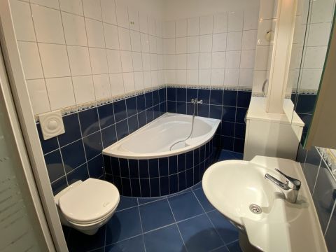 •fürdőszoba sarokkáddal, zuhanyzóval és WC-vel