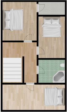 Felső szinten: 3 hálószoba (ebből 2 szobából saját erkély nyílik), Fürdőszoba-WC-vel, padlásfeljáró.