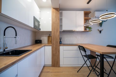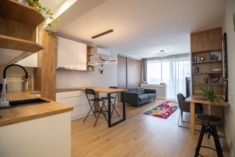 A lakás amerikai konyhás elrendezése lehetővé teszi a tágas, világos életteret, ahol a családi és baráti összejövetelek kellemesen eltölthetők. Az ingatlanhoz tartozó 6 nm-es erkélyről gyönyörű panoráma nyílik a környező zöld területekre, így a reggeli kávé mellett a természet szépségeit élvezheti.