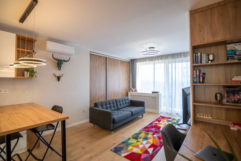 A lakás elhelyezkedése lehetővé teszi, hogy a város nyüzsgése mellett egy zöld oázisban élvezze a mindennapokat.