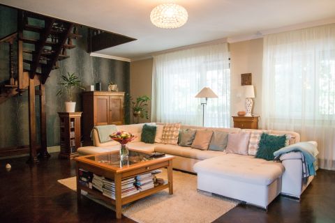 Debrecenben, a klasszikus Nagyerdőn, a Nagyerdei körútból nyíló csendes kis utcában, 276 nm-es (+ 42 nm-es dupla garázs) alapterületű, nappali + nagy konyha-étkezős + 4 szobás + 2 fürdő + wc-s + a szuterén szinten külön fürdő és wc-s, a nyolcvanas években, 470 nm-es telkre épült kétszintes (+a szuterén szint) gáz-cirkó fűtéses önálló családi ház eladó.