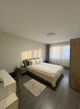 A 2 tágas szoba mellett praktikusan kialakított gardrób is tartozik a lakáshoz.