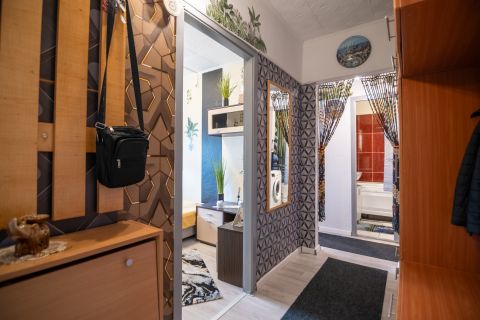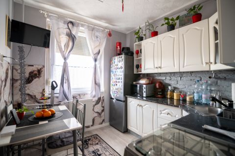A lakásban található beépített bútorok és szekrények esztétikusak és jól kihasználható tárolóhelyet biztosítanak, így az ingatlan azonnal költözhető. A biztonsági ajtó extra védelmet nyújt, ami különösen fontos a városi környezetben.