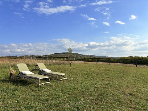 A birtok különleges fekvése révén zöldre és a Kishegyre nyíló, zavartalan panorámát biztosít. A lankás domboldal, a rendezett szőlősorok és a balatoni táj harmóniája olyan atmoszférát teremt, amely egyszerre nyugalmat áraszt és inspirál. Itt a csend nem elszigeteltséget jelent, hanem minőségi visszavonulást – mindezt a Balaton közelségével.
