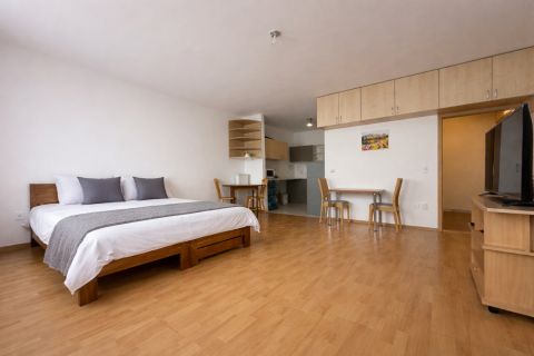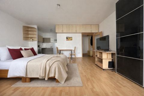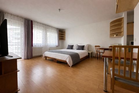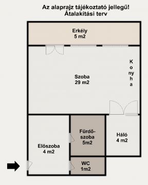A lakás jelenlegi elrendezése praktikus, ugyanakkor kis átalakítással a konyha modern, különálló hálófülkévé alakítható, így akár amerikai konyhás nappali + háló kialakítás is megvalósítható.