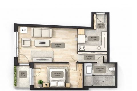 - 2. emelet, 46 m², 2 szoba