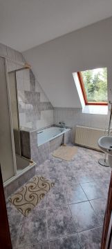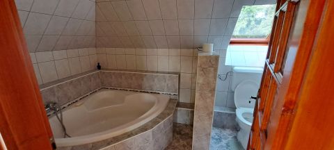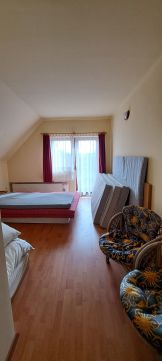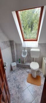 Az előszobából egy kényelmes lépcsőn jutunk a felső szintre, ahol találunk még 3 hálószobát, melyből kettőhöz erkély is tartozik és az egyik pedig saját fürdőszobával rendelkezik. Ezen a szinten található még egy fürdőszoba és egy wc, valamint egy kis sarok, ami egy kis tea-konyhaként funkcionál. Némi átalakítás után akár két generációs lakóháznak is alkalmas.