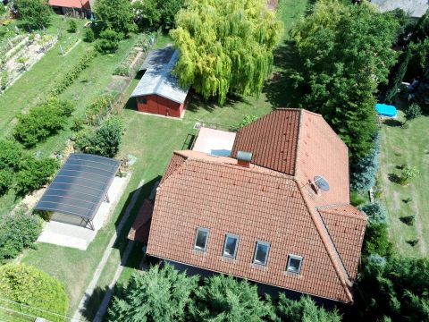 2020 nm-es telken található jó állapotú, 200 nm-es hasznos alapterületű ingatlan, melyhez tartozik még egy 138 nm-es pince szint is. Az épület kő talapzaton, téglából épült 1997-ben.