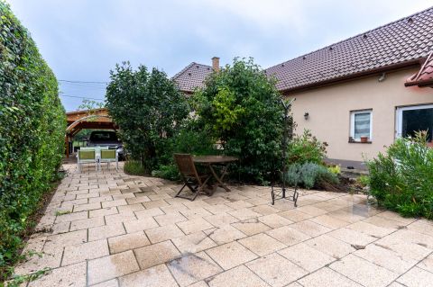 A térkövezett udvaron fedett gépkocsibeállóhely került kialakításra.