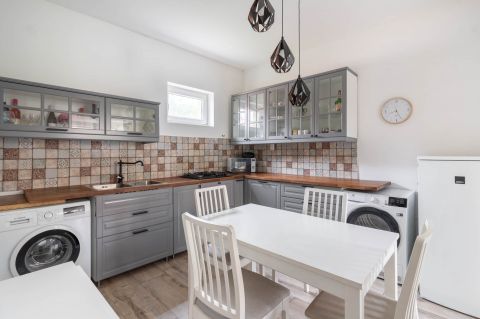 A felújítás során a belső terek is átalakításra kerültek az optimálisabb helykihasználhatóság érdekében. Ezáltal praktikusan kihasználható otthonná vált, amely kényelmes életteret nyújthat egy család számára is.