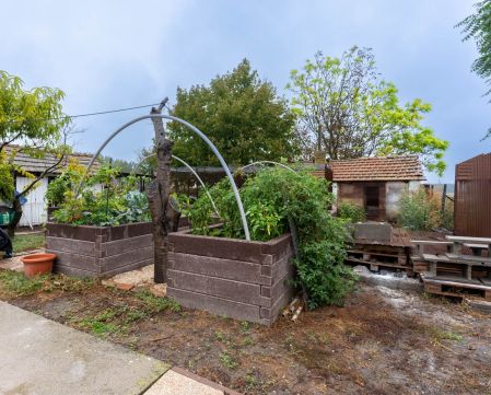 A kertben változatos növények és termő gyümölcsfák találhatóak, melyek folyamatos termést biztosítanak a tavasztól őszig tartó időszakban.