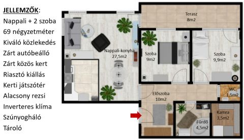 -A közel 70 nm-es lakás nettóban 63nm (58+fél terasz), így KEVESEBB A KÖZÖS KÖLTSÉG, hiszen azt csak a nettó terület után kell fizetni.