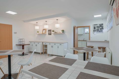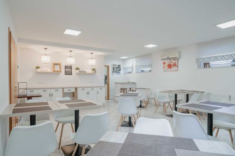 * Reggeliztető helyiség, jól felszerelt konyhával