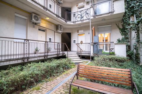 Az ingatlan a nettó területén felül 3.76 nm-es erkéllyel rendelkezik, amely egy hangulatos, növényekkel teli belső udvarra néz.