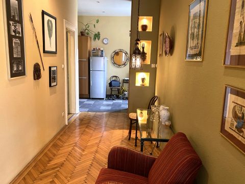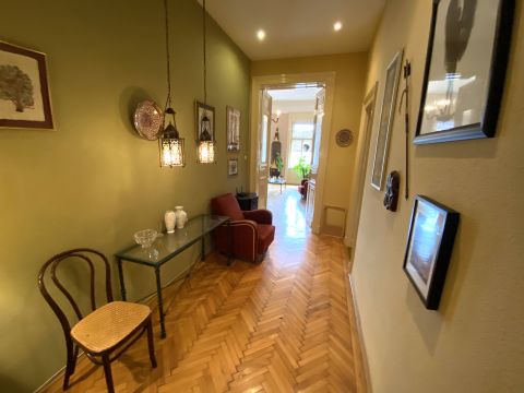Budapest VI. kerületében, a Király utcában eladó ez az elegáns 81 nm-es, 2 szoba + gardróbos , 3. emeleti lakás. Kb 10 éve teljes felújításon esett át (vezetékcsere, klíma beszerelés, parketta felújítás, festés), megtartva a nagypolgári stílust! Délnyugati fekvése ragyogó világosságot ad, ráadásul a szemközti ház tetőire nézünk, ami biztosítja az intimitást! Tágas terek, egyedi és ízléses kialakítás. A fűtése elektromos cserépkályhával megoldott, mely igen kedvező rezsit eredményez! Rendezett lépcsőház, jó lakóközösség! Lift egyelőre nincs, de tervben van a kialakítása!