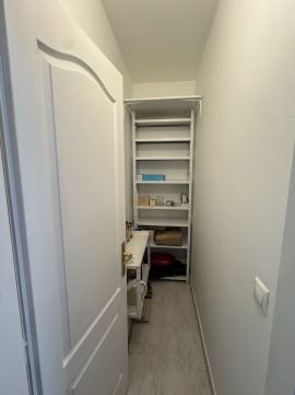 A beépített bútorok és szekrények maximálisan kihasználják a teret, így a lakás nemcsak esztétikus, hanem praktikus is.