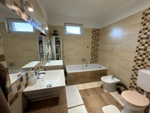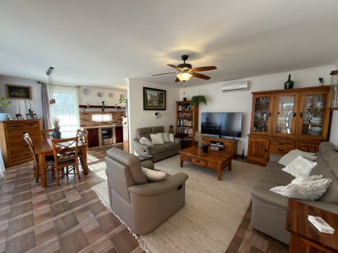 A ház hűtéséről Midea tipusú hűtő-fűtő klíma gondoskodik, a melegről pedig Ariston kombi kazán ( padló és radiátoros hő leadás). Kandalló beépítésre is van lehetőség, mivel a kémény már kiépítésre került.