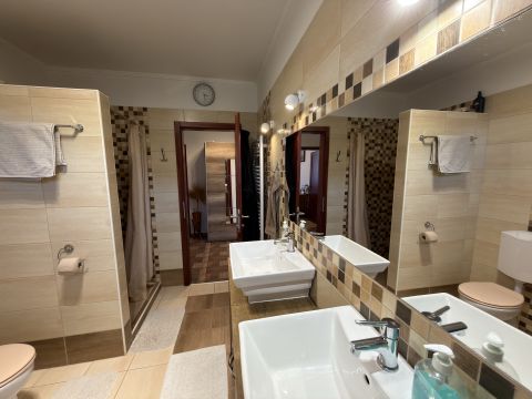 három külön nyíló szoba, tágas nappali–konyha–étkező, két fürdőszoba WC-vel, gardrób, háztartási helyiség, valamint kényelmes közlekedők biztosítják a praktikus és élhető mindennapokat.