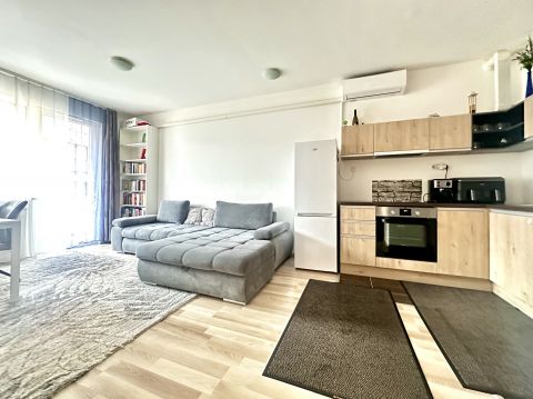 - Felosztása: előszoba, amerikai konyhás nappali és étkező erkély kapcsolattal, hálószoba, kádas fürdőszoba+toalett.