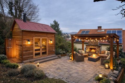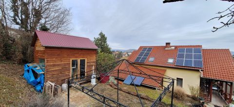 A József hegyi domboldalon található családi ház örök panorámát kínál a budai hegyekre és Törökbálint városára.