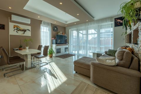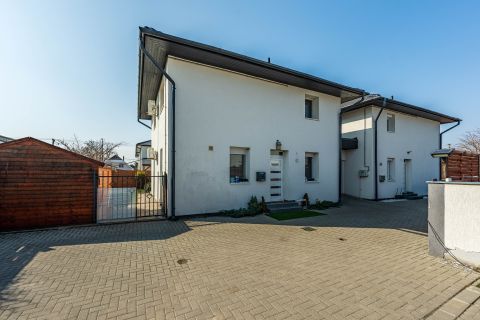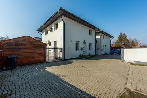 A 106 m²-es, kiváló állapotú ingatlan egy 250 m²-es telken, lakópark jellegű, zárt területen helyezkedik el, ahol a biztonság és az összetartó közösség kiemelt értéket képvisel. Az ikerház a szomszédos épülettel kizárólag a garázsnál kapcsolódik, így a lakótér teljes mértékben elszeparált, zajmentes életteret biztosít.