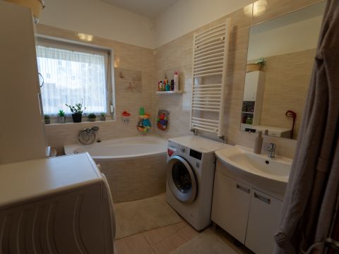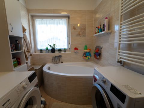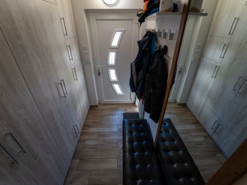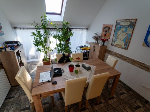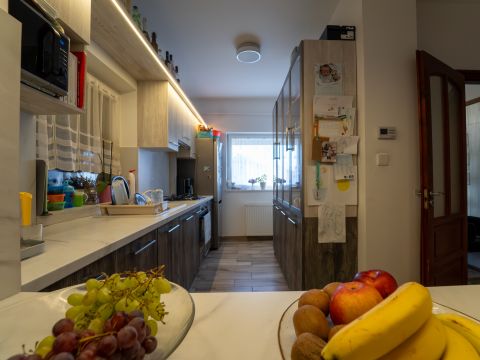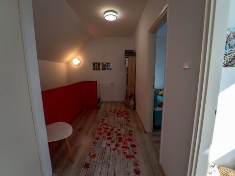A 2005-ben épült, tégla falazatú, tetőteres családi ház tágas és jól átgondolt elrendezésű. A földszinten világos nappaliétkezőkonyha tér fogad, külön fürdővel és WC-vel. Az emeleten három külön nyíló szoba és egy zuhanyzós fürdőszoba biztosít kényelmes életteret akár családnak, akár otthoni munkavégzéshez.