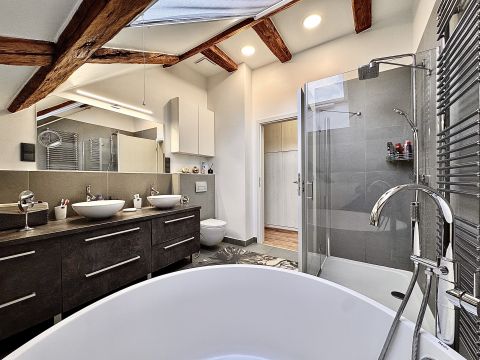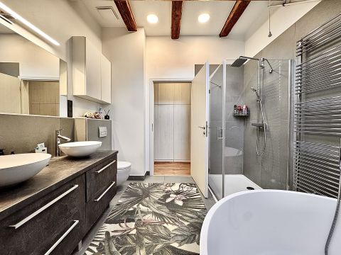 * Két fürdővel, külön WC-vel, gardrób helyiségekkel,