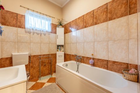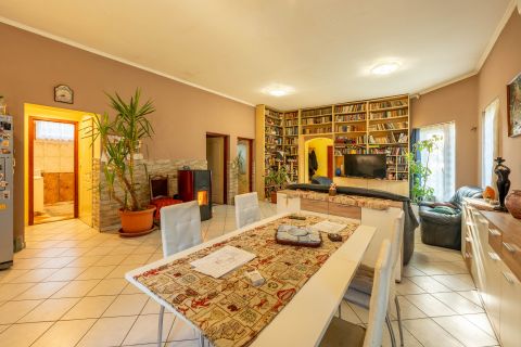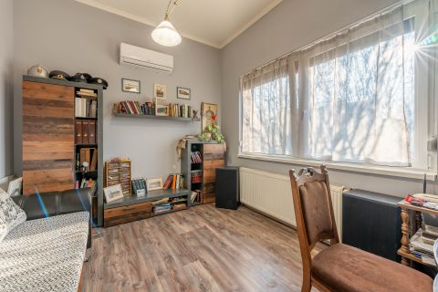 Ez a tágas, világos tér egyszerre otthonos és reprezentatív, tökéletes helyszíne a családi együttléteknek és a baráti összejöveteleknek. A földszintes kialakításnak köszönhetően minden helyiség könnyen megközelíthető, kényelmes és akadálymentes. A nappalin túl az ingatlan két külön nyíló hálószobával és egy dolgozószobával rendelkezik, így akár otthoni munkavégzéshez is ideális. A fűtésről gázkazán gondoskodik, de a házban pellett kályha is található, amely gazdaságos és hangulatos alternatívát kínál. A telekre víz, villany, gáz és csatorna egyaránt be van kötve.