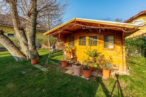 A kert rendezett, jól használható, a telken kerti tároló, valamint 2–3 autó számára alkalmas nyitott beálló is rendelkezésre áll. A környék különlegessége, hogy az ingatlan közvetlenül az erdő szomszédságában található, így a természet közelsége mindennap érezhető, mégis perceken belül elérhető minden fontos szolgáltatás: iskola, bolt, buszmegálló, főút.