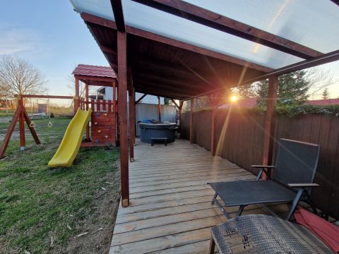- A 21,8m2 nagyságú DNY-i tájolású terasz, melyre a nappaliból is ki lehet jutni 2018-ban épült.