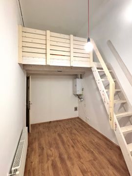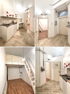 Praktikus elrendezés: Jelenleg 2 külön nyíló szoba, 5 m²-es állógaléria, minikonyha és külön fürdő/WC található benne.