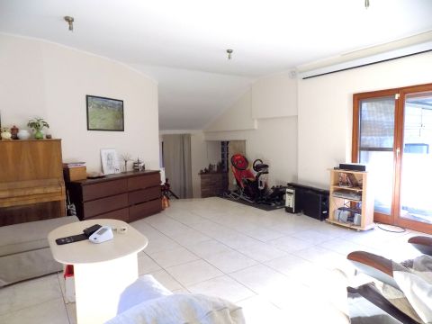 A felső szinten a nappalin kívül 2 szoba (az egyik saját terasszal és onnan lejárattal a kertbe), 2 fürdőszoba, kis konyha, nagy étkezővel, teraszkapcsolattal az alsó szinten egy kis garzon, innen közös vagy akár önálló bejárattal is megközelíthető az emelet.