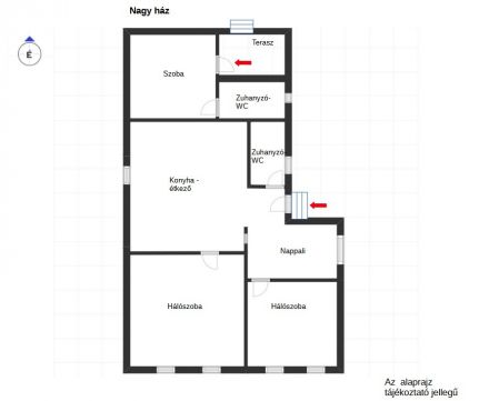 A 812 négyzetméteres telken 2 különálló ingatlan található. A nagyobbik házban 86,55 m2-es lakóterületen egy konyha-étkező, nappali, 3 hálószoba és 2 fürdőszoba-wc helyezkedik el.