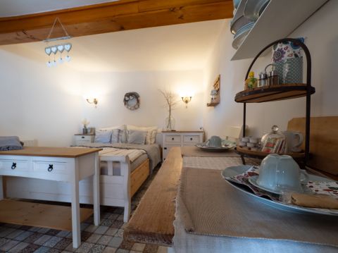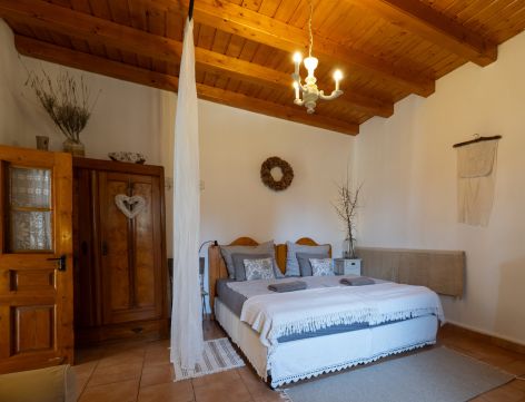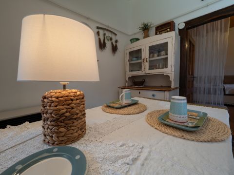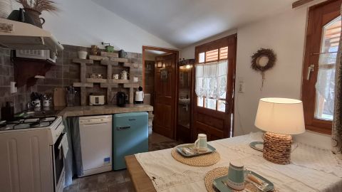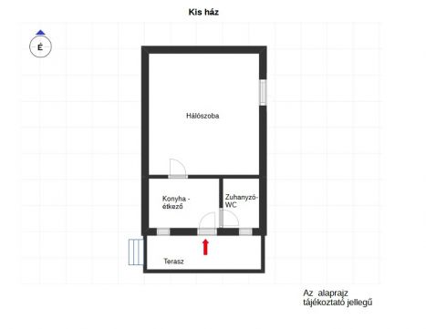A kisebbik, 38 m2-es házban egy konyha-étkező, tágas hálószoba, fürdő-wc van.
