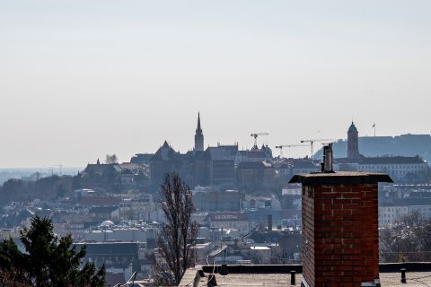 A teraszról elénk táruló budapesti látkép valóban különleges hangulatot ad ennek az otthonnak.