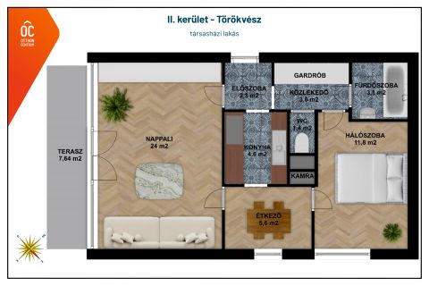 * jelenleg 2 szobás, de könnyedén 3 szobássá alakítható