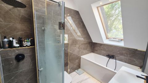 A ház korszerű gépészettel rendelkezik: kondenzációs kazán, radiátoros és padlófűtés, valamint inverteres hűtő-fűtő klíma biztosítja az egész éves komfortot.