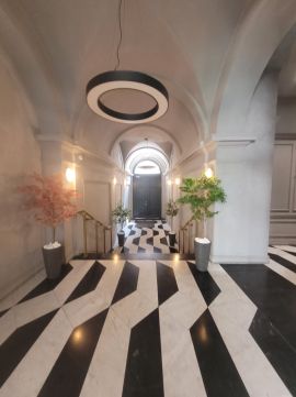 A lakás egy hét szintes, magas minőségben kivitelezett társasházban található, ahol a lakók biztonságáról folyamatos portaszolgálat gondoskodik. Az épület egyik legnagyobb különlegessége a tetőszinten kialakított kültéri medence és napozóterasz, ahonnan lenyűgöző kilátás nyílik a városra.