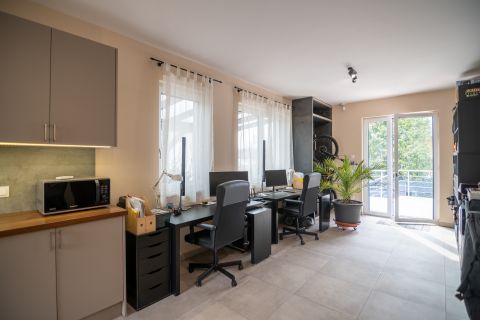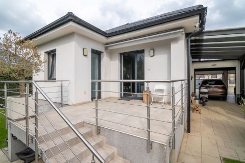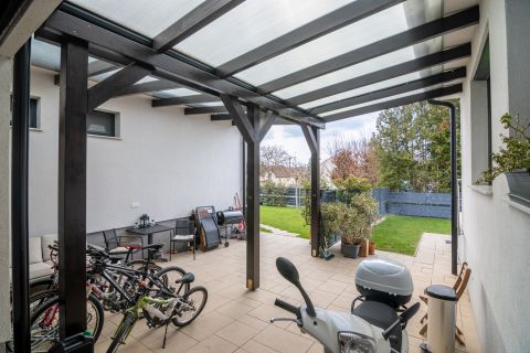 A házhoz egy kb 400nm-s saját, telekrész tartozik rendezett kerttel, és automata öntözőrendszerrel, ami megkönnyíti a kert gondozását