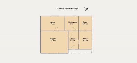 * Ház hasznos alapterülete 75 nm, ami magába foglalja a 3 szobát, előszobát, konyhát, fürdőszobát illemhelyiséggel