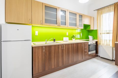 Szeparált, ablakos konyha. Fürdőszoba, wc külön helyiségben.
