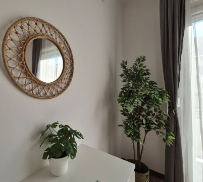 A magas emeleti elhelyezkedésnek köszönhetően a lakás világos és napfényes.