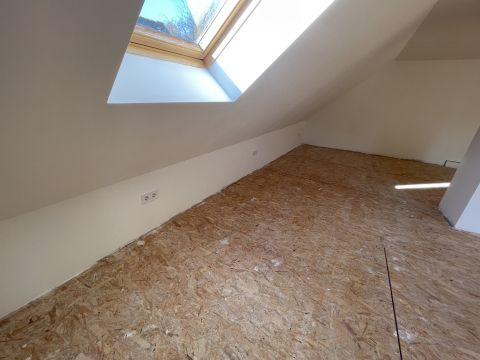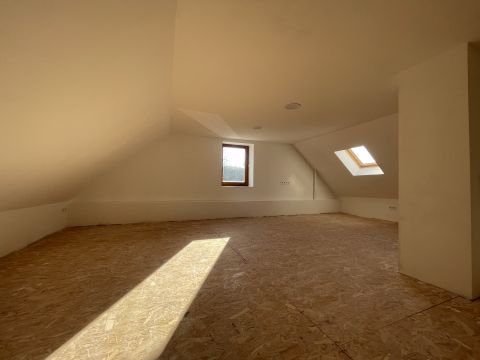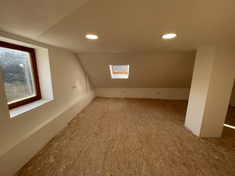Az emelet egyelőre egyterű, de itt kialakítható két hálószoba is.