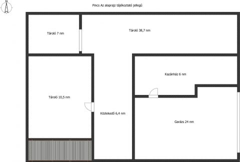 garázs, kazánház, több tárolóhelyiség, közlekedő és lépcsőház.